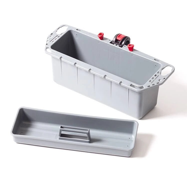 The Hobie H-Rail Tackle Bin attaches to the Hobie H-Rail to provide convenient storage for your small tackle. The top quick-access tray can hold small items or be removed to store larger tackle boxes. The outer perimeter of the tackle bin has spaces for your grips, knife, lures, and attachment points for lanyards. It clamps to the 12-sided H-Rail without any drilling or tools needed. When the clamp is secured, the tackle bin does not twist or slide along the rail. Loosening the clamp allows you to remove the accessory or slide it along the length of the rail. Fits the H-Rail on all 2015 Pro Angler 12, 14, and 17 kayaks.
