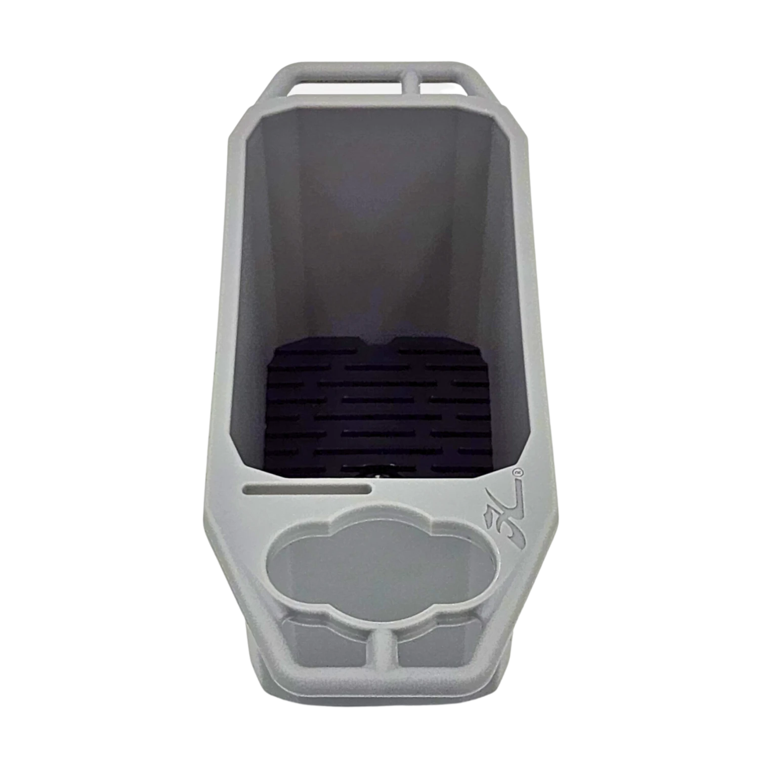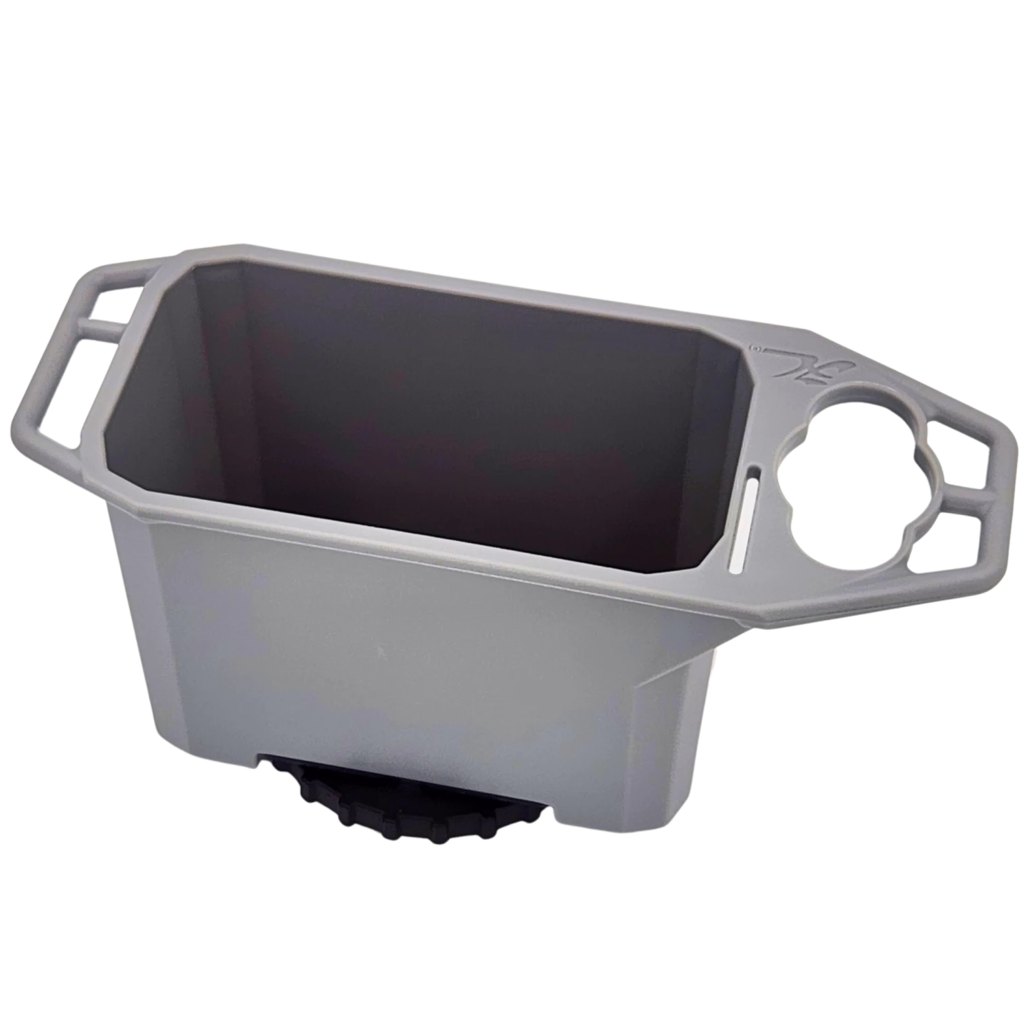 Space is always a commodity on a fishing kayak. That’s why we designed the Track Mount Mini Bin. Don’t let the name fool you, this slim bin packs serious utility. The oversized tension wheel and locking tab on the underside of the bin make for a seriously secure installation that resists unthreading. Featuring a molded tool holder, knife slot, braid scissor holder/pad eye, plus three additional pad eyes for leashing gear to – this bin holds it all. A snap-in floor that’s removable makes cleaning easy, and the raised drain channels shed water and prevent pooling. The bin’s internal size is just that to conveniently fit bags of soft plastics, or a variety of canned or bottled drinks.