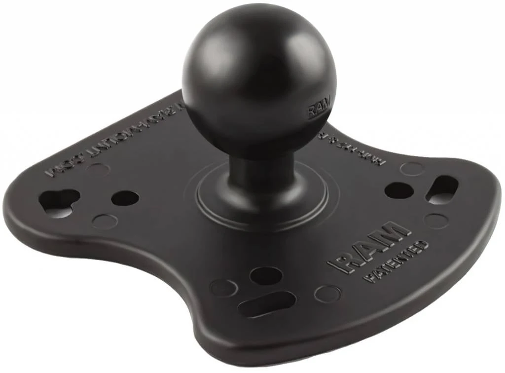 The RAM-107BU is a marine grade aluminum base with 1.5″ rubber ball. The base connects to the underside of Humminbird and Raymarine marine GPS devices.