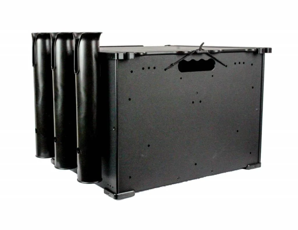 The BlackPak is 12″ X 16″ 11″ which will hold all your Kayak Fishing Tackle and Gear it has stations for up to 10 rod holders, each of which can be installed vertically or angled. When 4 or more rod holders are used, they can be installed in the “high and dry” position, preventing unwanted seepage from a wet tank well. The top rails are configured to accept all GearTrac or Mighty Mount compatible accessories. The lid is hinged and latched with elastic cord, and is designed for easy removal, allowing it to double as a baitboard. (Sold Unassembled)